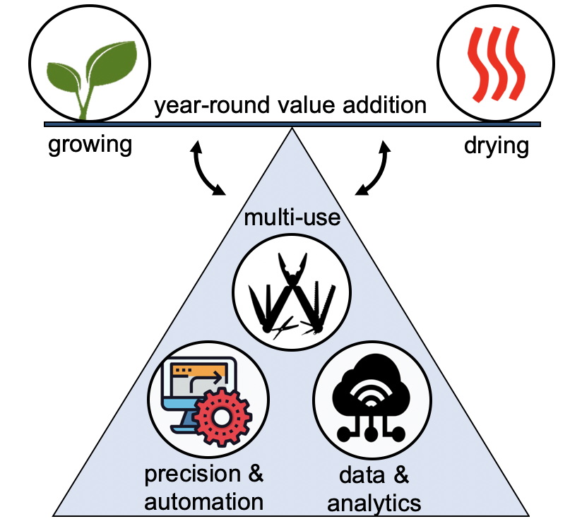 Advanced Adaptable Agricultural System (A3S): Combined-use drying and growing greenhouse for year-round utilization in agriculture