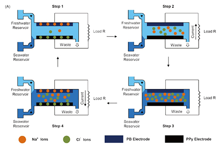 - Ye M. et al. Performance of a mixing entropy battery alternately flushed with wastewater effluent and seawater for recovery of salinity-gradient energy. Energy & Environmental Science. 10 April 2014 DOI: 10.1039/c4ee01034e