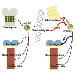 A team of Stanford researchers have identified a skeletal stem cell (SSC) along with the protein factors needed to direct differentiation toward bone, cartilage or bone marrow stroma. In addition, they discovered a method to induce skeletal stem cells by reprogramming other differentiated cells (such as adipose or muscle cells). These techniques could be used ex vivo or in situ for regenerative medicine applications to repair cartilage, heal bone or restore damaged bone marrow.
