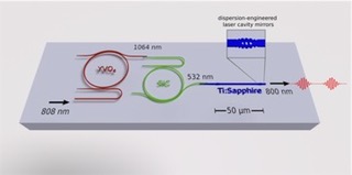 Stanford researchers at the Vuckovic Lab have developed a full chip-scale integration of a Ti:Sapphire laser system which dramatically reduces the size, cost, and power consumption by many orders of magnitude, compared to today's state-of-the-art systems which are bulky and expensive. The proposed architecture is a microscale Ti:Sapphire laser system, which converts an inexpensive infrared diode light into ultrafast pulses.