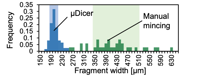 Figure 3 Mean fragment width dicing 5% agar manually and with a ?Dicer with an opening width of 195.75 ?m