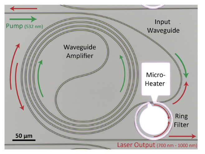 Stanford researchers have developed ultra-wideband amplification of near infrared signals for the first time on a photonic integrated circuit. Previously, optical amplification on photonic integrated circuits has been limited to wavelengths longer than 1000 nm, which has restricted use in biological applications. Furthermore, tabletop titanium-sapphire are large, cost, and require high optical pump powers. The Stanford developed diode-pumped photonic integrated titanium-sapphire waveguide amplifier incorporates the critical near-infrared window for biological tissue, which is pivotal for medical imaging and diagnostic equipment, as well as provides an on-chip solution for applications such as quantum technology, LiDAR and beyond.