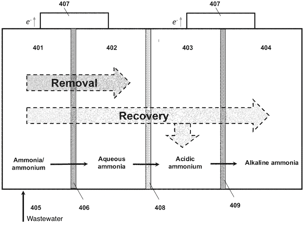 - Integrated Process: Combining electrodialysis and membrane stripping within a multi-chamber reactor enhances the efficiency of ammonia extraction and reduces the need for separate treatment processes and chemical inputs needed during nitrogen recovery (less acid is needed if less acidic ammonium fertilizer is generated).