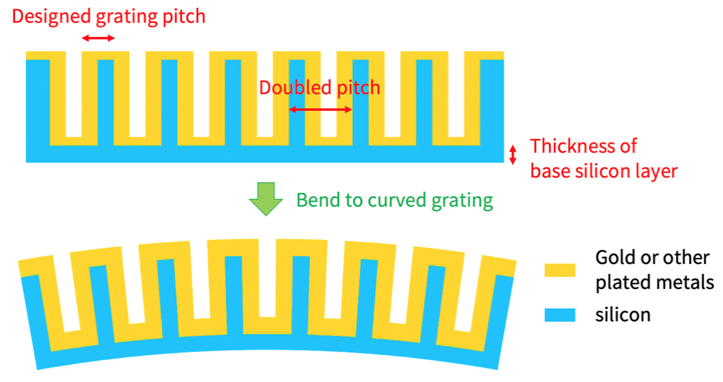 Stanford researchers at the Hasselink Lab have developed a method for making a high aspect ratio phase grating structures on a substrate that can be curved to better meet the optics requirements in X-ray differential phase contrast (DPC) imaging systems.
