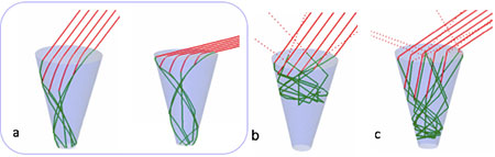 Figure 1: An AGILE that is linearly graded from RI=1 to RI=3.5 (a) concentrates light perfectly even at very acute angles.