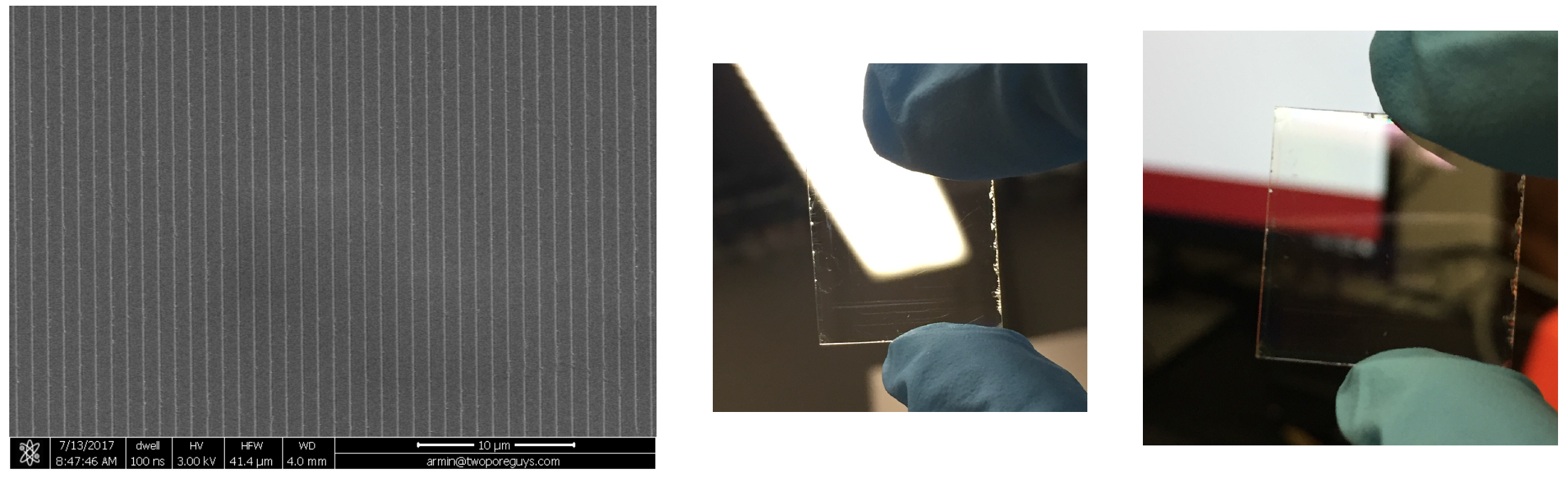 Researchers demonstrated ultra-thin, rainbow-free, eye tracking, optical coating device based on guided mode resonance that exhibits near-unity transmission. The tested 200-nm-thick Si3N4 slab waveguide was sandwiched between a quartz substrate and a 100-nm-thick SiO2 capping layer designed for high transmission (>90%) over the whole visible spectrum. Prototype glasses are under development.