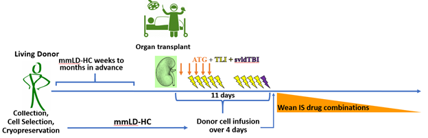 The inventors developed a revolutionary technique that leverages mismatched hematopoietic cells from living and deceased donors, eliminating the need for long-term IS medication and increasing patient survival rates post-organ transplant. Patients receiving an organ transplant will be administered a mixed dose of T-cells or hematopoietic stem cells from donors to induce persistent immune tolerance. The treatment leverages non-physiologic ratios of donor cells from either living or decease donors. As decease donors make up the largest pool of organ donors, the treatment provides a novel solution to create host conditioning for organ recipients. Prior clinical trials showcased the safety and efficacy of the invention, and additional clinical trials are currently underway at Stanford to demonstrate the proof-of-concept of the technique.