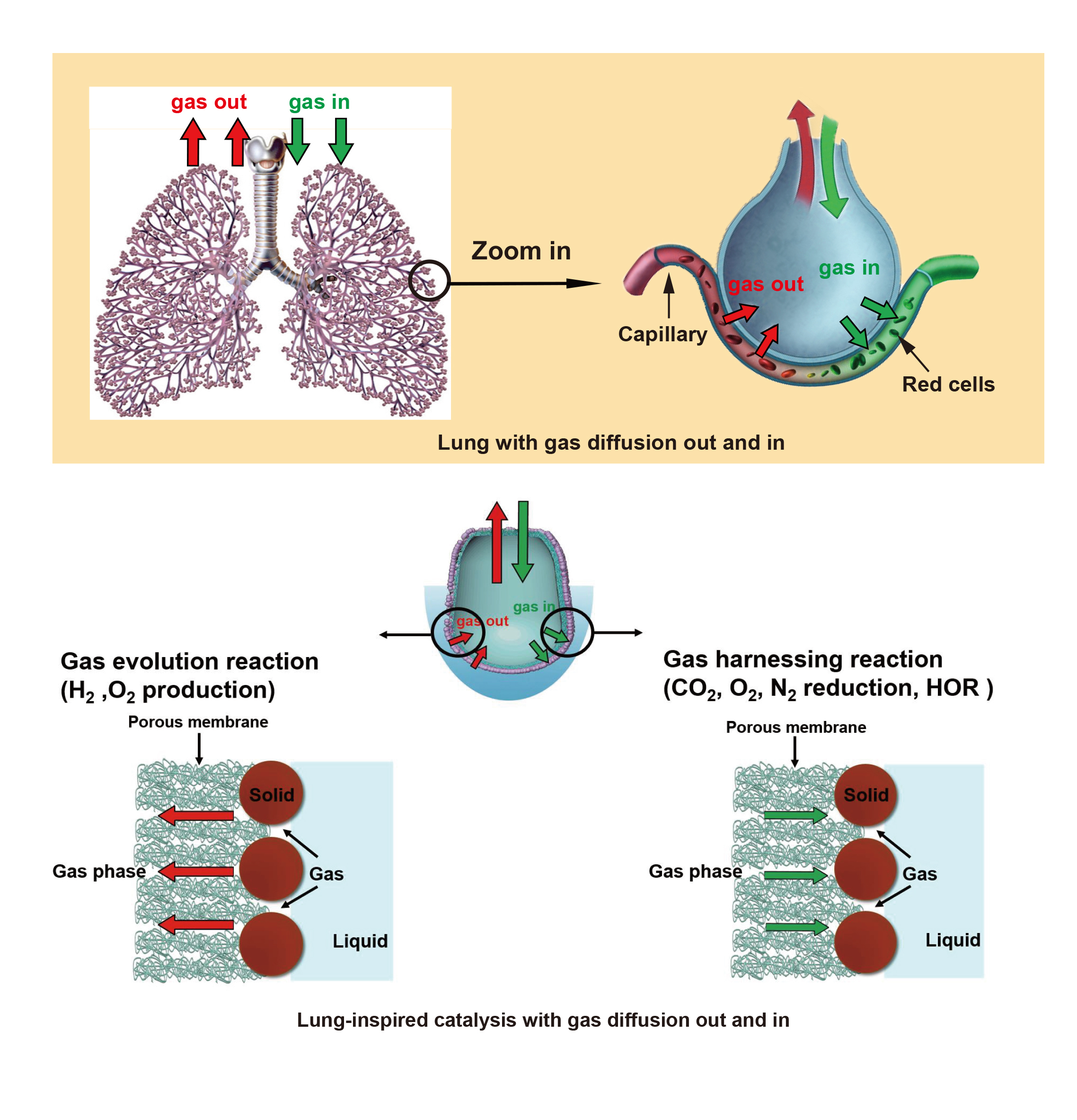 The general structure is formed by a flexible, micron-scale nanoporous membrane that is permeable to gas and not liquid. This membrane is coated with an ultra-thin layer of catalyst and creates a gas-liquid-solid (G-L-S) three-phase interface for highly efficient gas exchange, facilitating a wide range of reactions depending on the catalyst chosen. This compact structure could improve performance of electrocatalytic devices in a broad range of clean energy applications such as fuel cells, metal-air batteries, electrochemical water splitting and CO2 reduction.