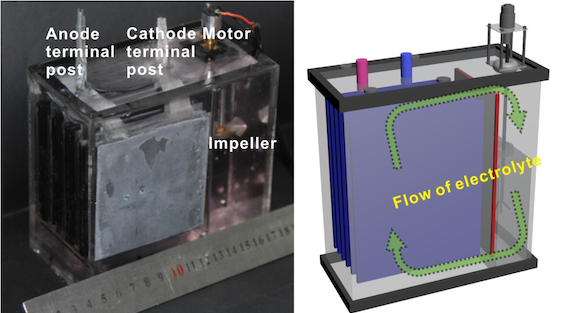 Stanford researchers have developed a low cost, safe, environmentally friendly, rechargeable Zn/MnO2 flow battery with the potential for grid scale energy storage. Due to capacity decay, primary (non-rechargeable) Zn/MnO2 batteries have dominated until now. The Yi Cui Group addresses capacity decay/poor cathode reaction reversibility in their membrane-free aqueous flow Zn/MnO2 battery, where the anode is zinc-based chemistry with the reversible Zn2+/Zn deposition/stripping reaction, and the cathode is based on the dissolution-precipitation reaction (Mn2+/MnO2).