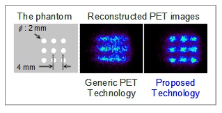 - Compatible with (only minor modifications to) existing detector technology used in most commercially available PET systems