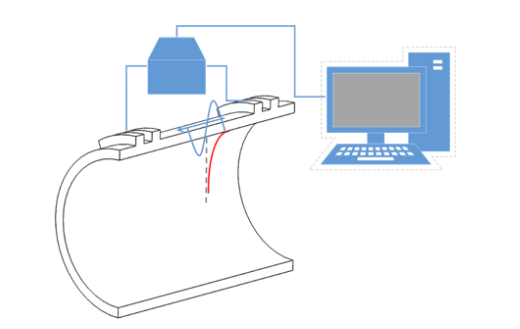 Figure 1: Leaky Lamb flow metering setup, consisting of the pipe and an instrument to monitor the effect of the flow on leakage of the guided waves.