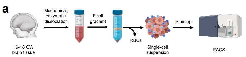 Researchers at Stanford have developed a novel method for the isolation of neural stem and progenitor cells (NSPCs). The ability to isolate and purify distinct NSPC types is crucial for scientific research studying neurodevelopment and developing therapeutics for neural regeneration. This novel method includes dissociation of brain tissue, staining with fluorescent antibodies, and isolation of cell types using fluorescence-activated cell sorting (FACS) based on the expression of various cell surface markers. Using different surface marker combinations, the method can isolate nine distinct NSPC types, including oligodendrocyte precursor cells (OPCs) and pre-OPCs, as well as excitatory and inhibitory neurons. The method purity for isolating NSPC types is superior to existing cell isolation methods and was verified using single-cell RNA sequencing and sorting. Isolated cells were functionally validated using in vitro and in vivo models. Successfully isolated NSPCs can be grown as neurospheres, used in preclinical and clinical applications such as disease modeling and drug screening, and/or banked for future use.