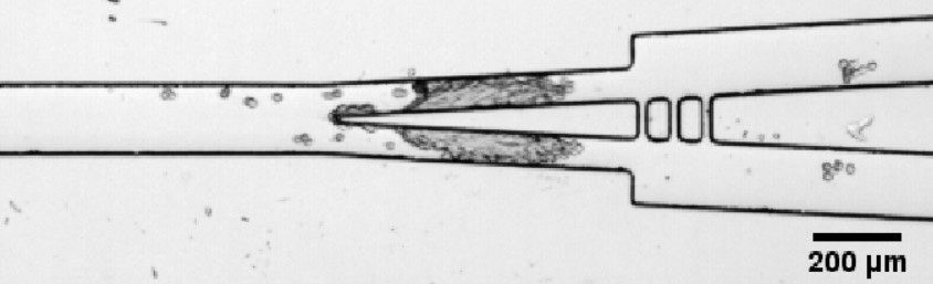 Figure description - Image of a spheroid cleaved using the microfluidic guillotine.