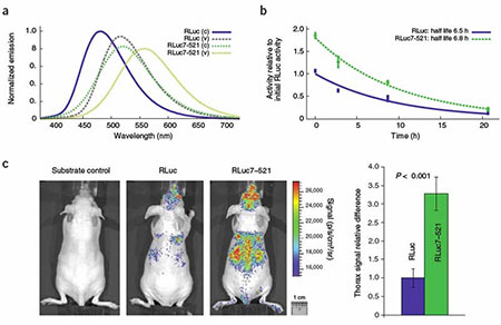- Loening AM, Wu AM, Gambhir SS. Red-shifted Renilla reniformis luciferase variants for imaging in living subjects. Nat Methods. 2007 Aug; 4(8):641-3.