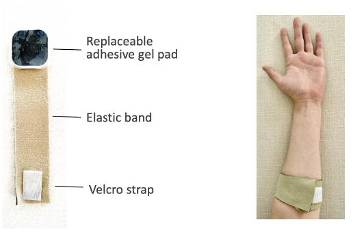 The brace consists of a replaceable adhesive gel pad, an elastic band, and a Velcro strap. The gel pad is placed on the skin at the site of nerve compression and the brace is secured around the forearm. It offers a more cost-effective, efficient, and non-operative solution compared to traditional methods.