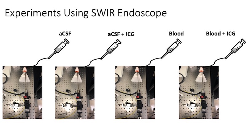 Stanford researchers have developed new optical device capable of identifying CSF leaks in a safer, label free manner. This multi-wavelength (785nm, 1200nm and 1450nm) surgical system uses an endoscope sensible to the short-wave infrared region (SWIR) to explore different areas of the skull base for CSF leaks. Absorption spectra were obtained for CSF, blood, and mucus. 3D printed models and cadaver testing were used as a proof-of-principle to assess the effectiveness of this surgical device in detecting CSF leaks intraoperatively. This method is believed to be an effective means of diagnosis without the need for intrathecal fluorescein.