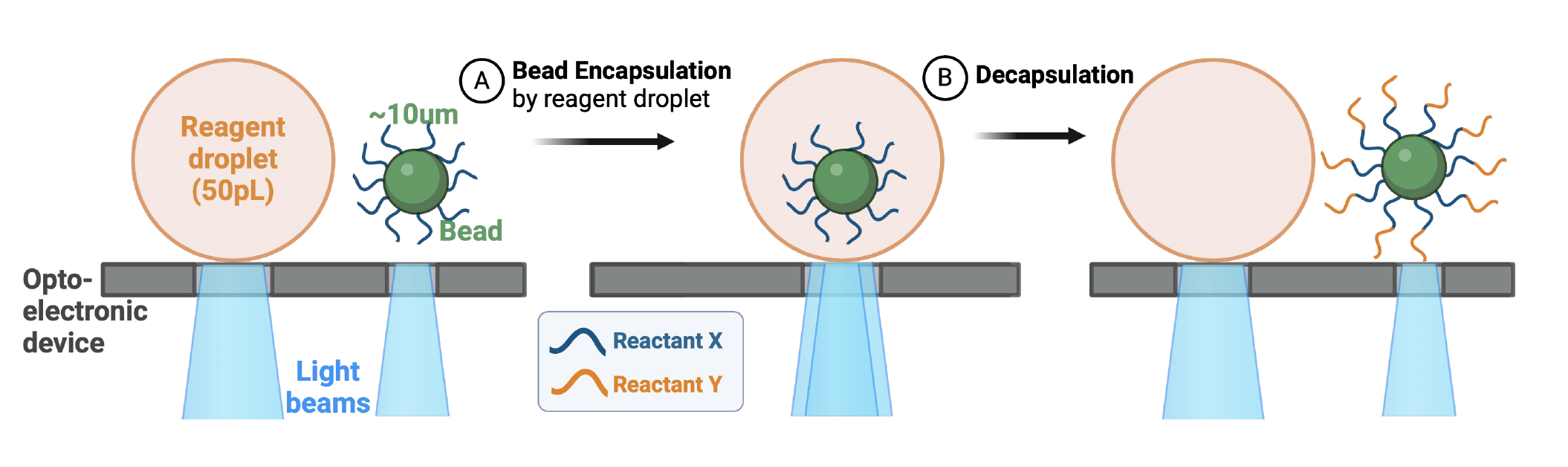 FIgure 1 Schematic light-orchestrated microdroplet reactors for solid-phase reactions