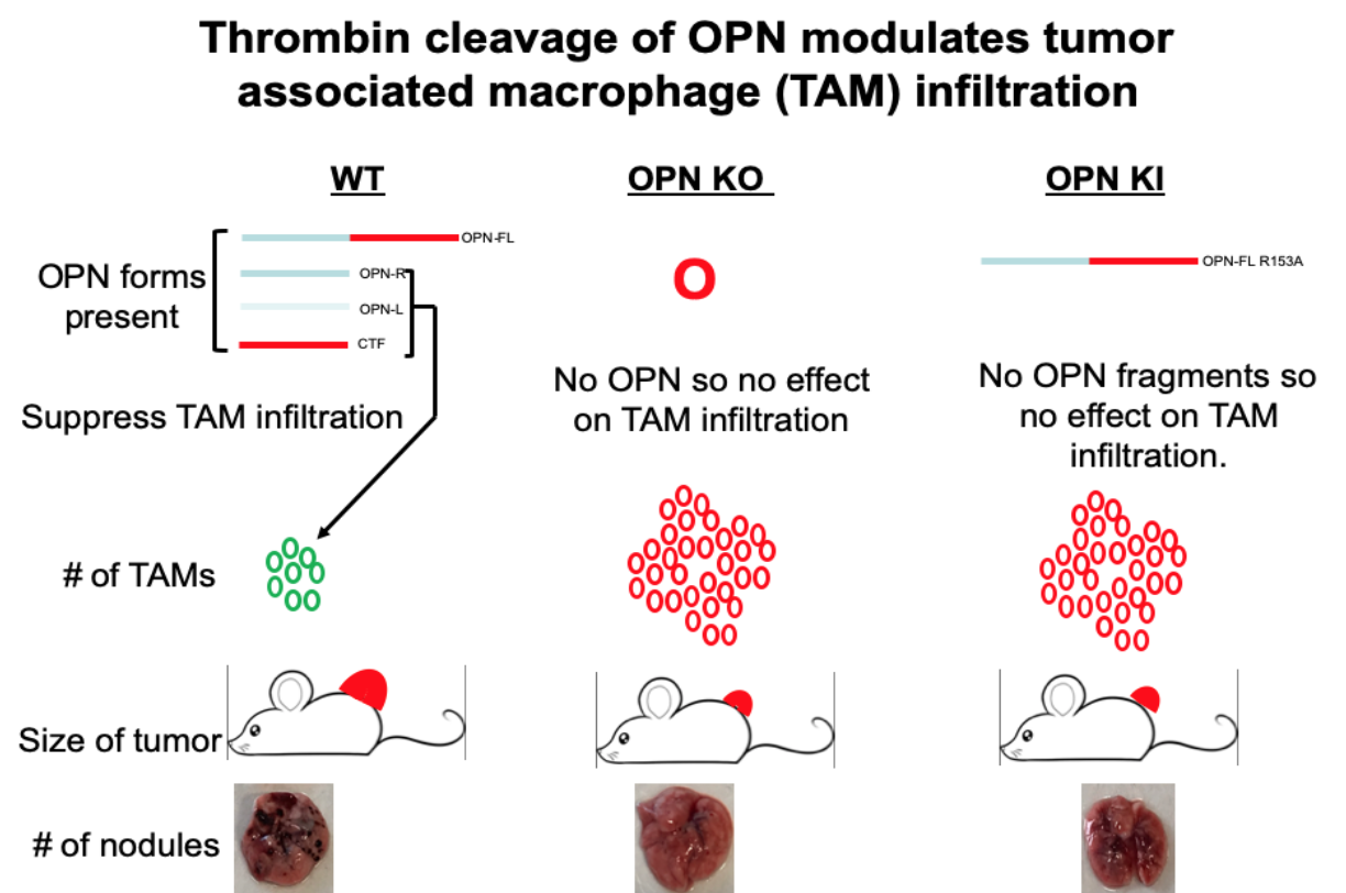 Researchers at Stanford have found that tumors with mutations in the protein osteopontin have improved outcomes- particularly if that mutation renders the protein resistant to cleavage by thrombin. The anti-cancer effect of the mutation can be replicated via treatment with a thrombin inhibitor, demonstrating the importance of the thrombin-osteopontin cleavage interaction in cancer progression. Researchers show that mouse models of melanoma treated with a direct-acting thrombin inhibitor have reduced tumor volume and fewer tumor nodules. That result also applied to a mouse model of ovarian cancer, suggesting broader impact of the thrombin/osteopontin target.
