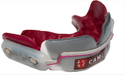 Stanford researchers at the Camarillo Lab have designed a real-time screening device system for predicting risk of concussion resulting from head impacts. The system is comprised of a skull-mounted sensor device (instrumented mouthguard - see image below) embedded with an accompanying algorithm which uses MEMS sensors to calculate the likelihood that an impact is concussive or non-concussive using a simple mechanical model of the brain.