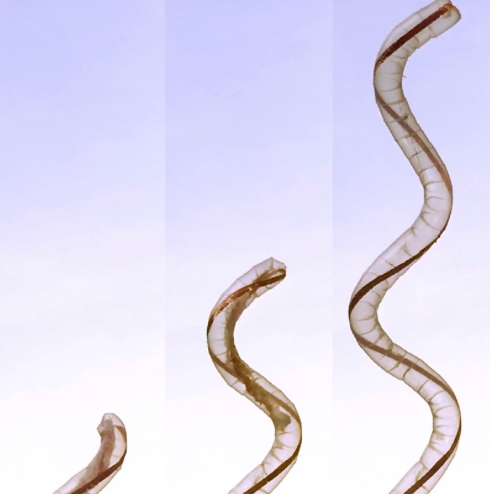 Mechanical engineers at Stanford have patented a soft robot with a vine-like structure capable of growing over 100 times in length. The pneumatics-powered robot can withstand being stepped on, extend through gaps a quarter of its height, climb stairs as large as a meter per step, and navigate over rough, slippery, sticky, and aquatic terrain – or, at a smaller scale, through tortuous blood vessels. Within its region of growth, it provides sensing like traditional mobile robots, and a physical conduit, such as a water hose that grows to a fire, an oxygen tube that grows to a trapped disaster victim, or a catheter that grows to a tumor.