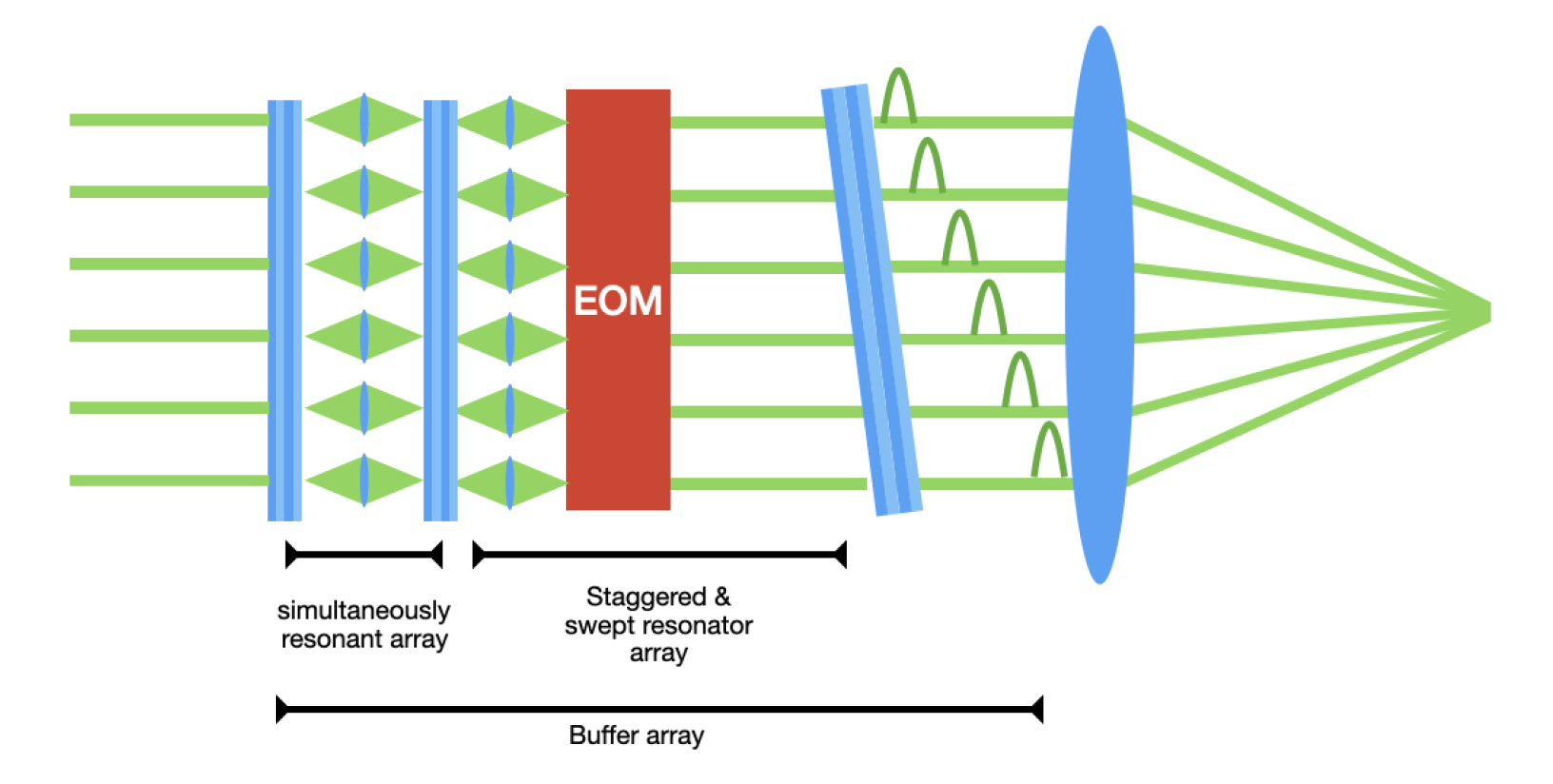 Figure 1 Buffer array with coupled cavity arrays + EOM