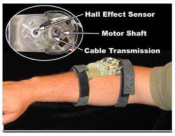 The inventors have completed and tested a prototype of portable skin stretch device, strapped to the forearm.