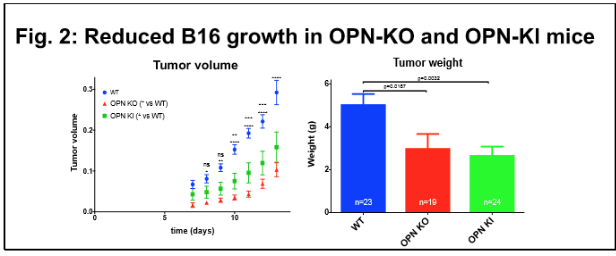 - Similarly reduced tumor growth in KO and KI mice shows, for the first time, the pathophysiological importance of thrombin cleavage of OPN
