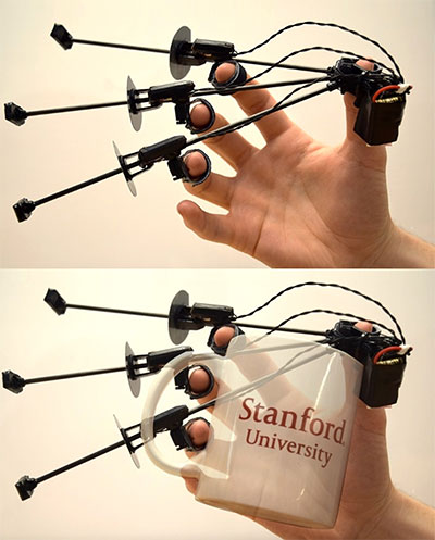 - Choi, I., Hawkes, E. W., Christensen, D. L., Ploch, C. J., & Follmer, S. (2016, October). Wolverine: A wearable haptic interface for grasping in virtual reality. In 2016 IEEE/RSJ International Conference on Intelligent Robots and Systems (IROS) (pp. 986-993). IEEE. DOI:10.1109/IROS.2016.7759169